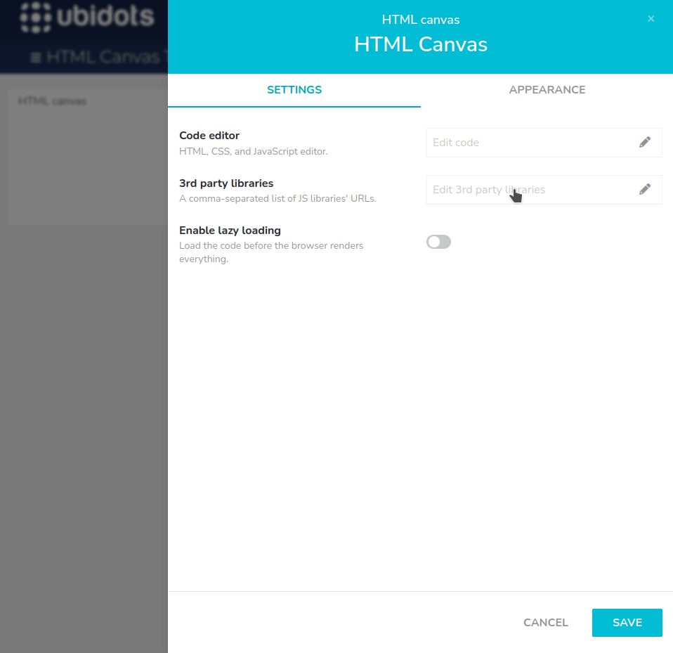 The HTML Canvas widget supports importing third-party libraries from CDNs. By specifying the CDN URL, you can include third-party libraries written in Vanilla JavaScript or React components.