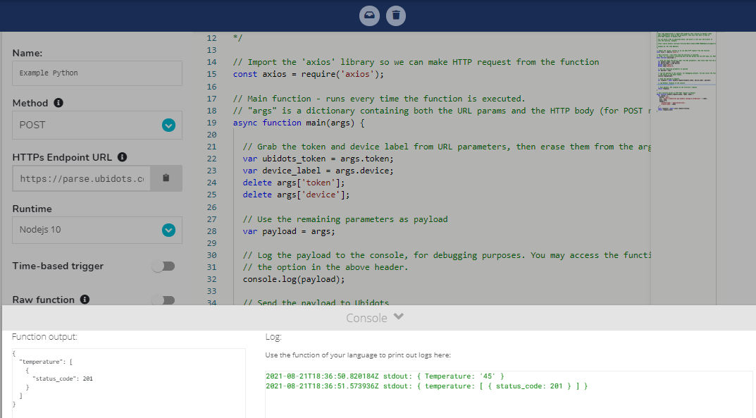 In your Ubidots account, go to the "Devices" tab and select "Functions".