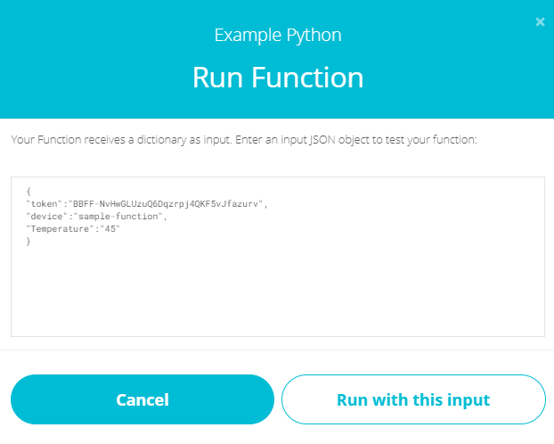 Token: select a token from your account to use in your function code.